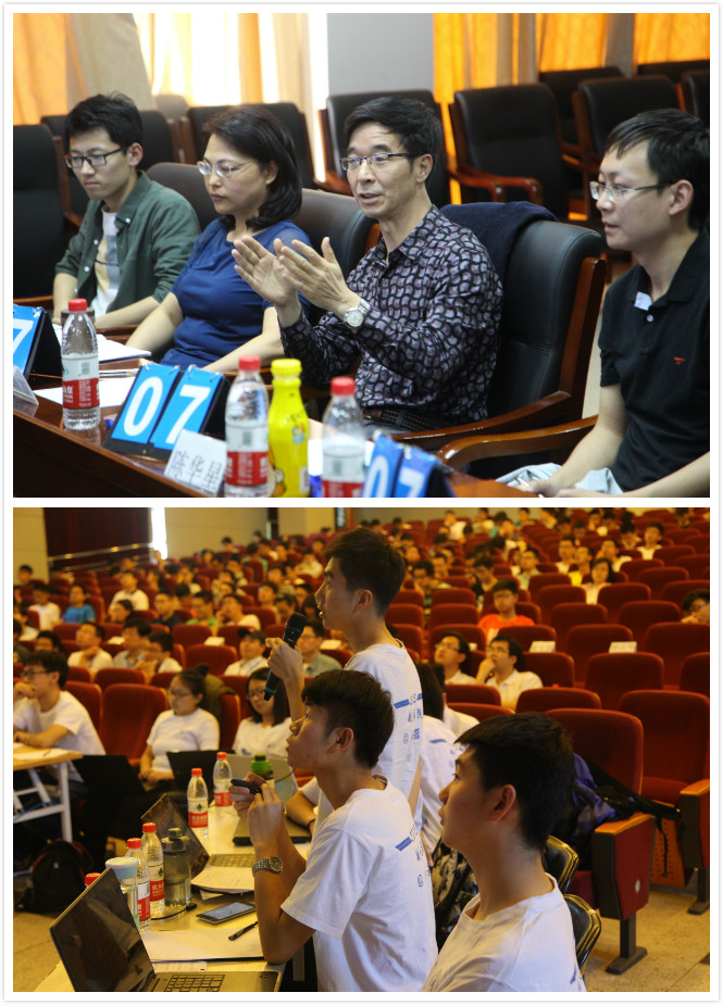 可以说,本次比赛已不仅仅只限于此,参赛同学在场上是对手,为了每一个观点都争得面红耳赤,而在场下却相互分享实验成果、探讨理论,以改进自己的方案使之更加完善。在场下的讨论中,评委们也积极参与,与同学们共同讨论理论和实验上的问题,令各参赛队受益匪浅。