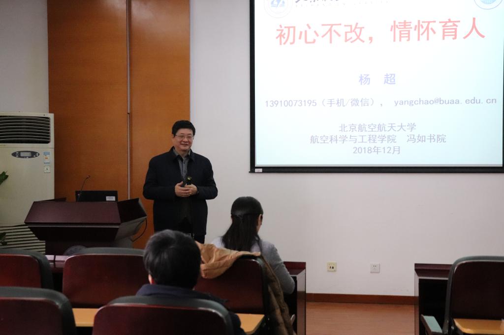 12月21日下午,2018年校“立德树人优秀奖”获奖教师航空科学与工程学院杨超在必赢76net线路官网学术交流厅(主楼513大)作题为《初心不改 情怀育人》的师德宣讲。物理科学与核能工程学院教师参加本次宣讲。宣讲会由必赢76net线路官网分党委书记王文文主持。