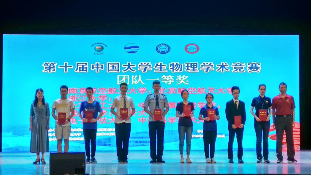 日前,第十届中国大学生物理学术竞赛(CUPT)在青岛大学举办。经过地区赛选拔,共有包括清华大学、北京大学、复旦大学、南京大学、中国科学技术大学、南开大学、必赢76net线路官网等在内的64所高校组成的65支队伍参赛,必赢76net线路官网由吕恩泽、李伟担任领队,队员王宇恒、樊迪、陈子瑞、潘越、李成栋组成的代表队在比赛中表现优异,以总成绩第5名获得团体一等奖,并被评为“最佳风采奖”。