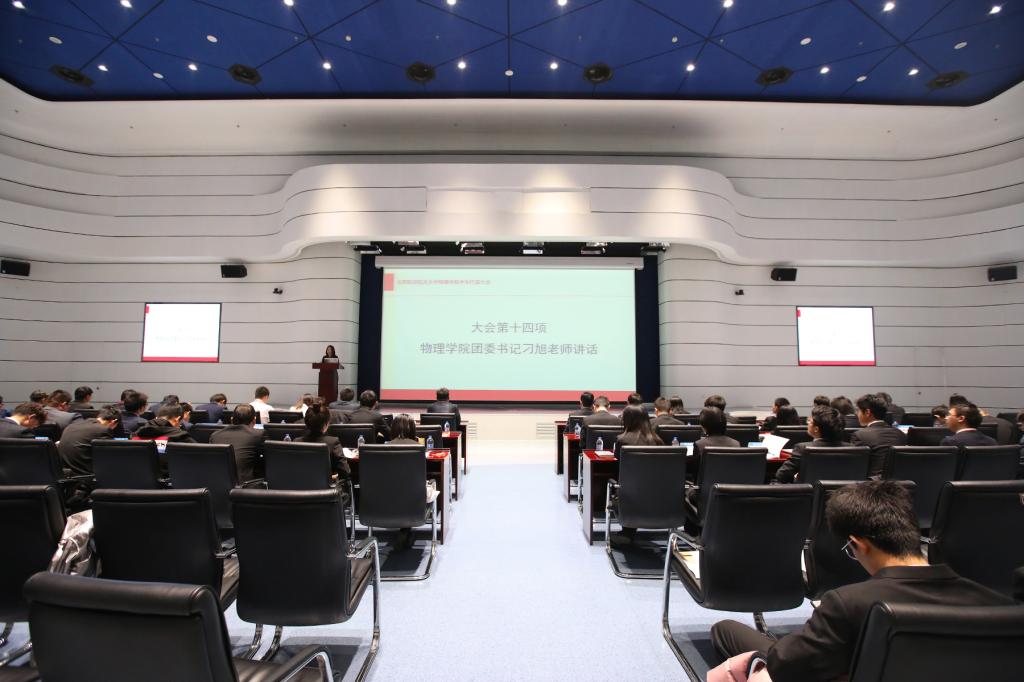 大会最后,刁旭老师发表了题为“格物致知物理人,青春奋进新时代”的主题讲话,对新当选的常任代表表示祝贺,并对与会代表提出了六点要求,鼓励广大同学做有理想、有道德、有本领、有情怀、有担当、有底线的青年一代。