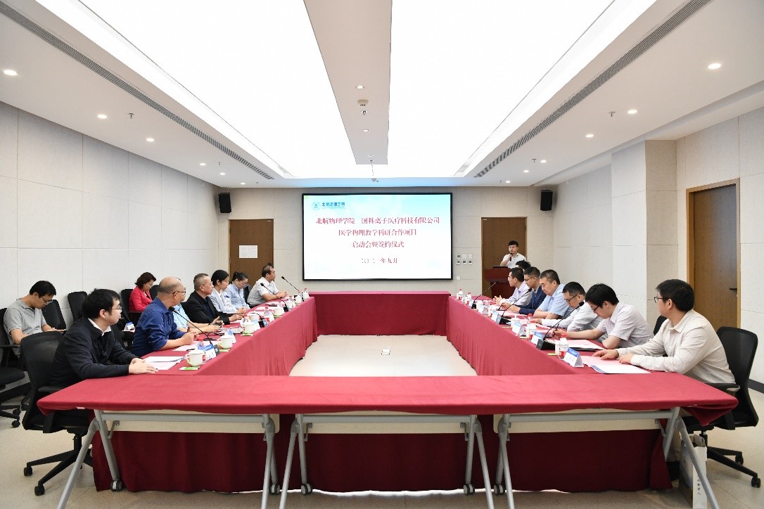 9月24日下午,北航必赢76net线路官网—国科离子医疗科技有限公司医学物理教学科研合作项目启动会暨签约仪式在沙河校区国实C座511会议室举行。国科离子医疗科技有限公司董事长、总经理马力祯一行访问必赢76net线路官网,并就教学科研合作项目进行了深入交流。北航校友联络发展处副处长、教育基金会秘书长颜江芬,必赢76net线路官网院长吕广宏,副院长耿立升,副书记吕经纬,院长助理孙保华、张玉洁以及核科学与技术系部分教授代表、研究生代表参加了会议。