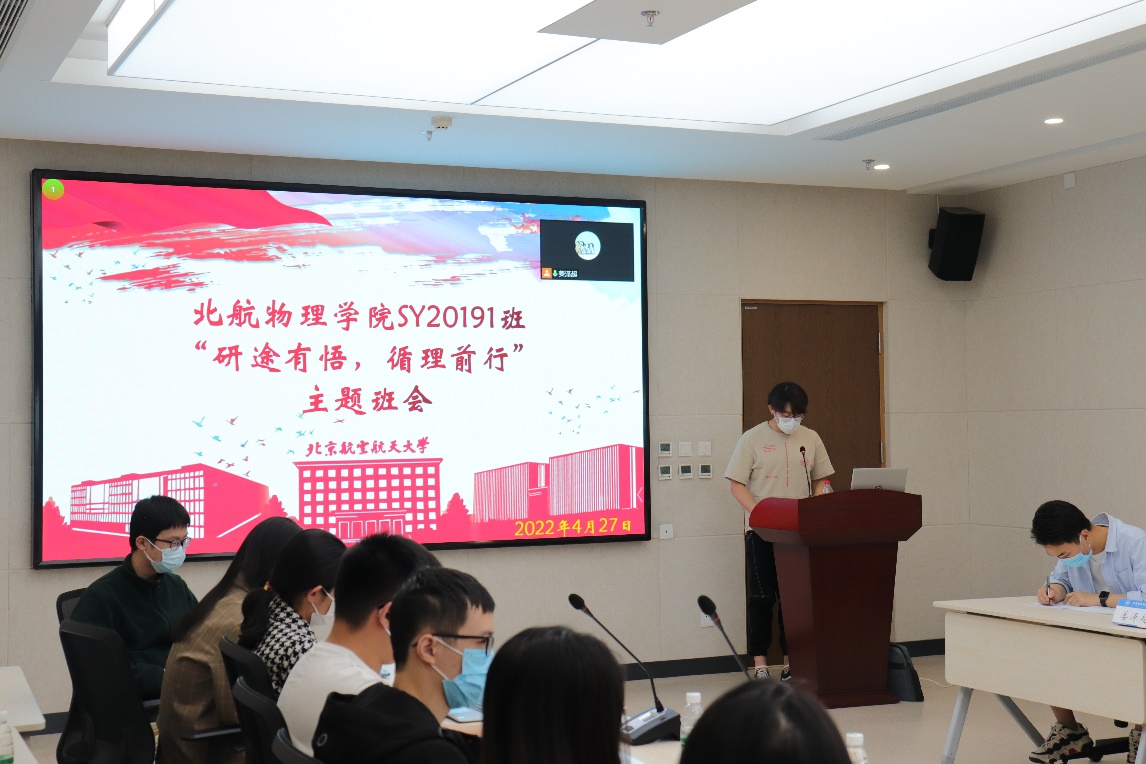 4月27日下午,必赢76net线路官网SY20191班举行“研途有悟,循理前行”主题班会,黄海军副校长,必赢76net线路官网院长吕广宏,副书记吕经纬,辅导员李思瑶、姜泽超以及SY20191班同学参加了本次班会。班会由团支书吴艳松同学主持。