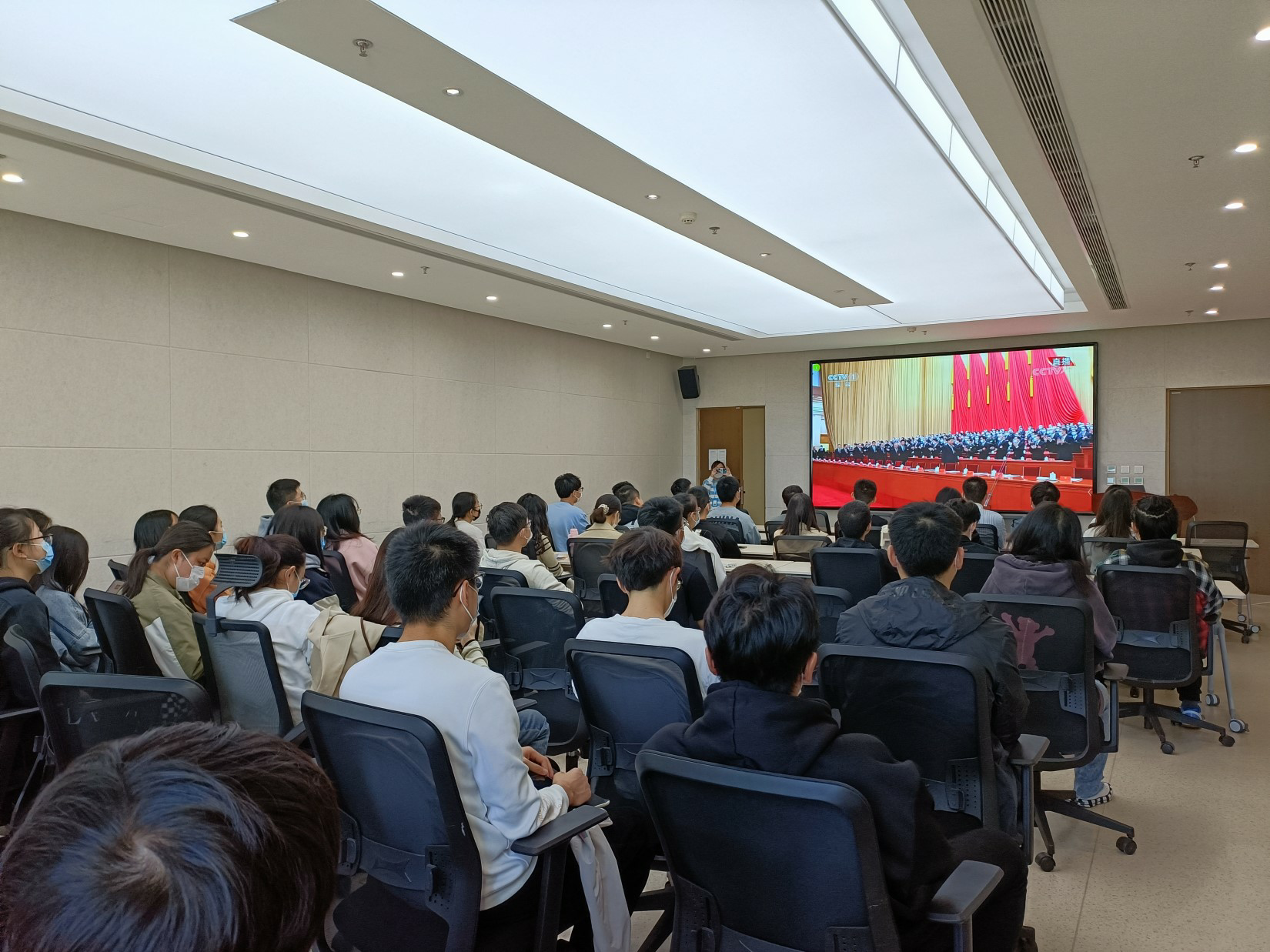 必赢76net线路官网积极部署,领导班子成员、全体辅导员在沙河校区咏曼剧场观看了大会直播。学院在沙河校区主楼C座511、523和506会议室设置了同步会场,组织本科生第一、第二党支部,研究生BY2219、SY2219、SY2119党支部的党员集中观看,并安排其他师生党员自行观看,大家认真聆听了习近平总书记在大会上的报告。