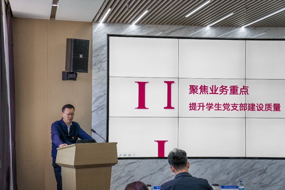 何情老师带来了题为《履职尽责、担当作为,做好学生党建和思想政治工作》的首场理论党课。何情从职责定位、制度依据、业务重点、提高站位四个方面,阐述了学生党建工作与学生思政工作的有机统一,系统梳理了党建工作开展的制度遵循,强调了学生党建辅导员要重点抓基础、抓质量、抓效率这几方面工作。最后,何情对党建辅导员提出了强化担当、提高站位、增强本领、全面发展的希望和建议。