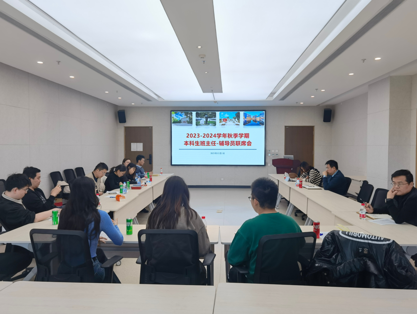 2023年12月1日中午12:00,2023-2024学年秋季学期本科生班主任-辅导员联席会在沙河校区主楼C511会议室举行,必赢76net线路官网党委书记李广超、党委副书记齐建立、本科生各班班主任、专职辅导员李思瑶和本科生各兼职辅导员出席了本次会议。