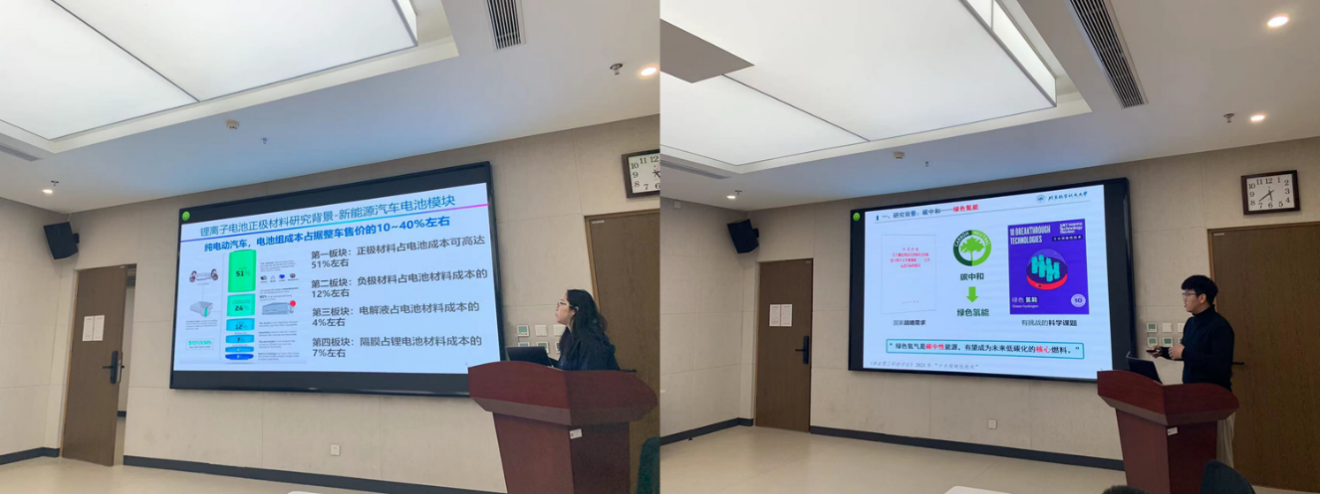 两位在站博士后李晓霞、蔡智分别做了题为《碱金属离子电池中的普鲁士蓝正极材料》和《光辅助重构现象研究及其对电催化析氧性能的影响》的学术报告。他们告诉新入职的博士后,博士后期间可以依托学校申请各类博士后基金,包括博士后面上基金、青年基金、博士后创新人才支持计划、国际交流引进计划等。两位博士后基金申请成功的经验也为各位在站的博士后提供了宝贵的经验。