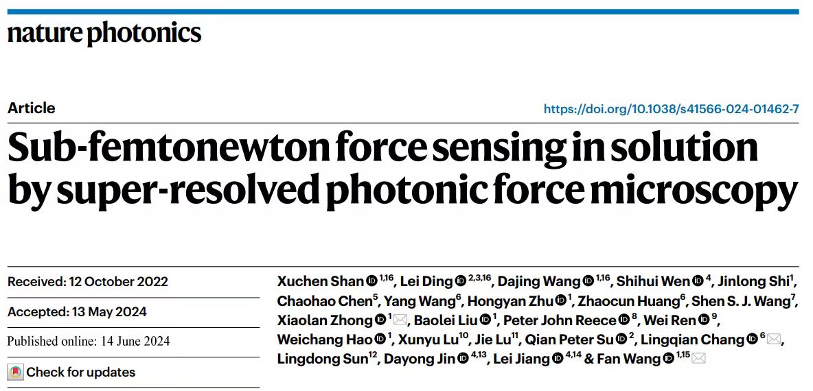 该项多学科交叉的研究成果相关工作以“Sub-femtonewton force sensing in solution by super-resolved photonic force microscopy”为题,发表于最新一期的《Nature Photonics》 上。必赢76net线路官网为唯一通讯单位。