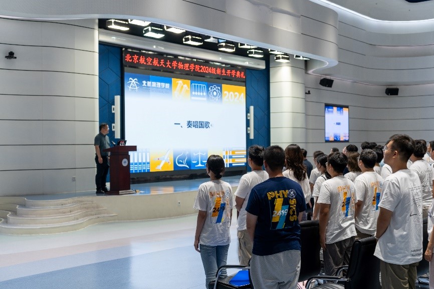 在庄严的国歌声中,本次开学典礼拉开了序幕。必赢76net线路官网院长吕广宏,党委书记李广超,副院长黄安平,副院长孙保华,院长助理、党委委员金硕,院长助理杜轶,院长助理周洪波,党委委员、应用物理系主任张国锋,物理系主任郝维昌,核科学与技术系党支部书记宋春艳,2024级拔尖计划班主任金文涛,2024级强基计划班主任赵润东,北航五四奖章获得者袁悦,党政办公室主任荣翠华,分团委书记宋树洋,专职辅导员李思瑶,2024 级研究生辅导员李文豪,2024级强基计划辅导员吕子轩,2024级拔尖计划辅导员左沛雷以及全体2024级强基计划、拔尖计划本科生,2024级研究生参加了本次开学典礼。开学典礼由学院党委副书记齐建立主持。