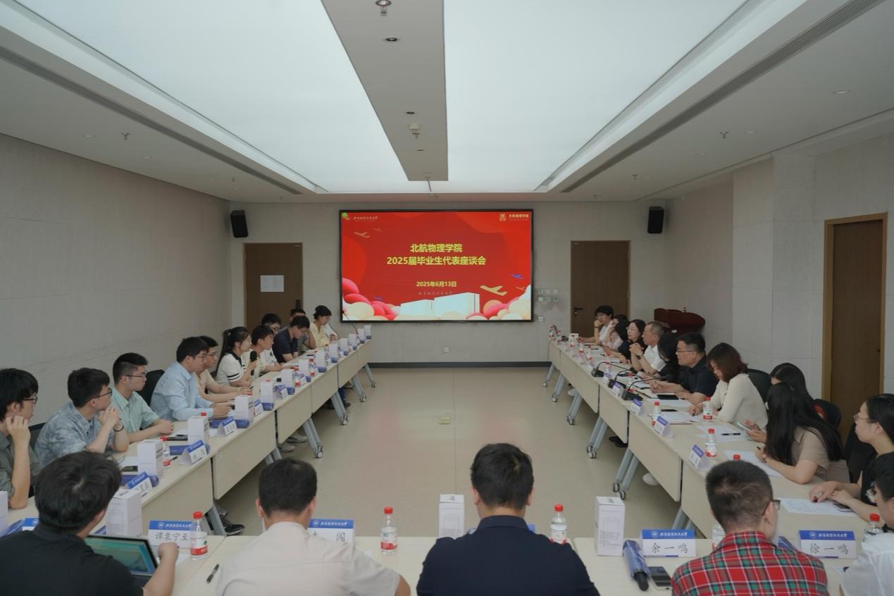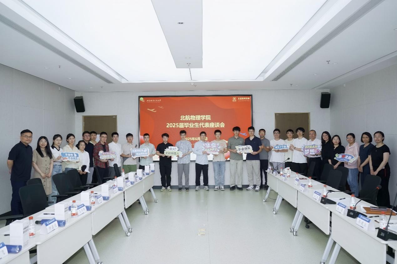 座谈会上,与会毕业生代表动情讲述在北航的求学时光,分享科研实践、成长蜕变的点滴感悟,并表达了对学院的感激与不舍。余一鸣分享了参与科研课题、大创项目的经历,表示要继续在北航深造并传承科研精神的决心。韦闯分享了在实习中认识到产学结合对降低研究成本的意义,表示将带着这些感悟投身工作,以专业所长推动理论与实践的融合。谭袁宁至分享了面试落选与训练压力的经历,坦言是学院活动、学生工作及课程展示环节锻炼了能力、重塑了自信,表示将以更开朗的姿态迎接未来挑战。葛多伦分享了强基计划求学期间的成长历程,从大一力学课程的不适应到通过与师生频繁讨论找到学习方法、提升成绩的转变,表示将带着对物理的热爱继续深耕科研领域。师鑫龙分享了对“成长是舍与得的选择”的感悟,表示未来将以对科学的坚守与对生命的热忱,在认识与改造世界的征程中继续书写“破茧成蝶”的成长篇章。