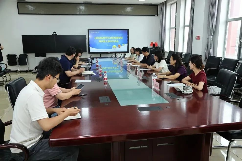 7月11日,必赢76net线路官网与北航实验学校中学部物理教研组举行合作交流座谈会。必赢76net线路官网党委书记王菲等领导及教师代表应邀出席,北航实验学校党委书记马树微、校长宋友及中学部物理教师团队共同参会。
