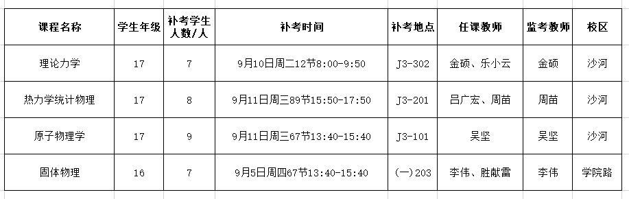 18-19-2学期专业课补考安排