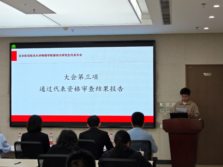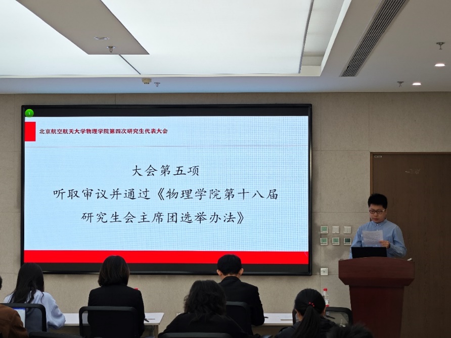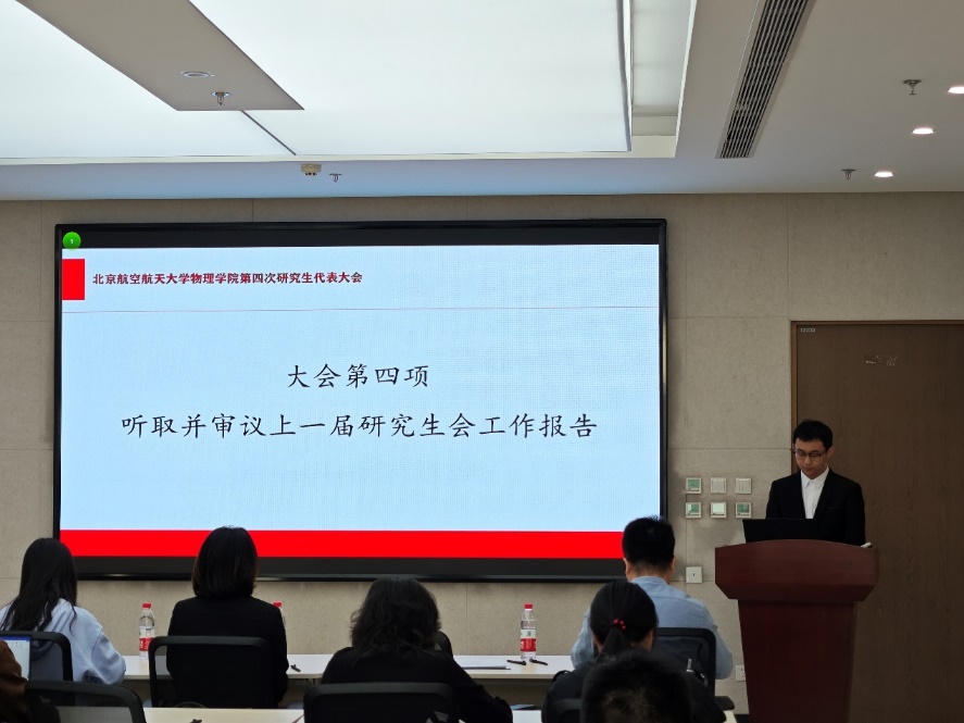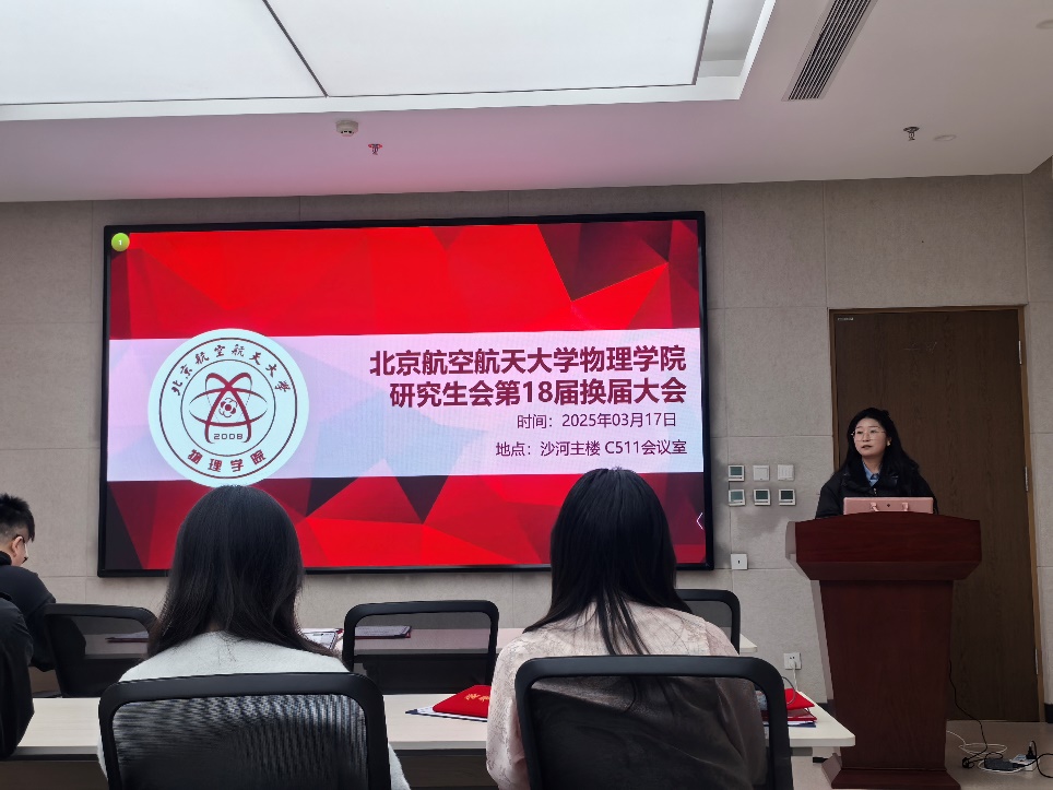 2025年3月13日上午10时,北航必赢76net线路官网第四次研究生代表大会在沙河校区主楼C511会议室召开。出席会议的有北航研究生会主席团成员马钰涵、必赢76net线路官网2022级硕博辅导员谢雨希、必赢76net线路官网研究生会现任主席团成员杨乔锋、王孝龙以及众多研究生代表。会议由必赢76net线路官网研究生会王振宇主持。