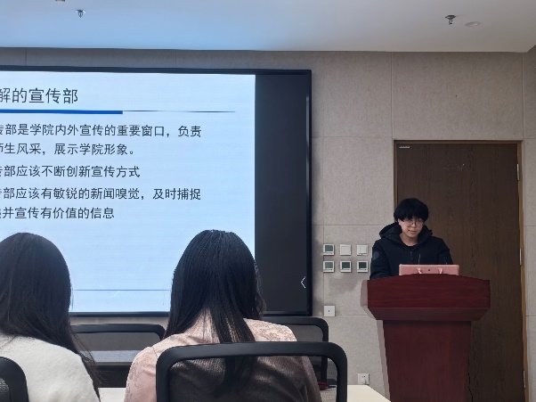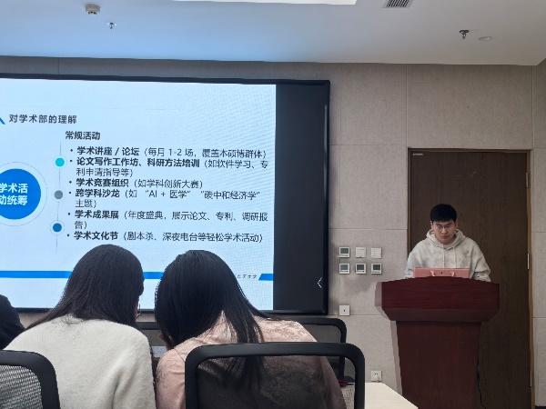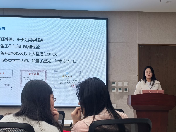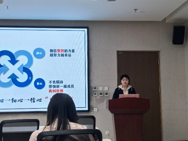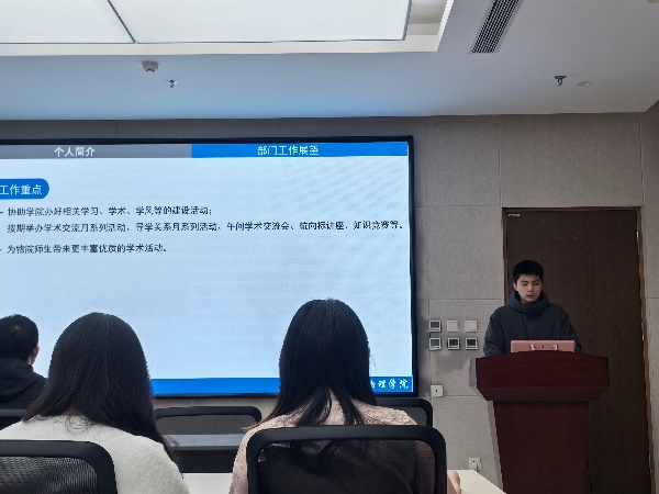 紧接着,会议进入第十八届研究生会部长团换届竞选答辩环节。参与竞选的同学分别从个人基本情况、学生工作经历和部门工作展望等方面进行了展示。经过角逐和评委评选,最终产生了第十八届研究生会部长团成员名单。