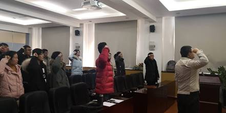 最后,由王雷华书记作为领誓人,带领全体党员重温入党誓词,并与大家分享了心得,并希望支部成员可以严格要求自己,努力建设支部,争做优秀党员。