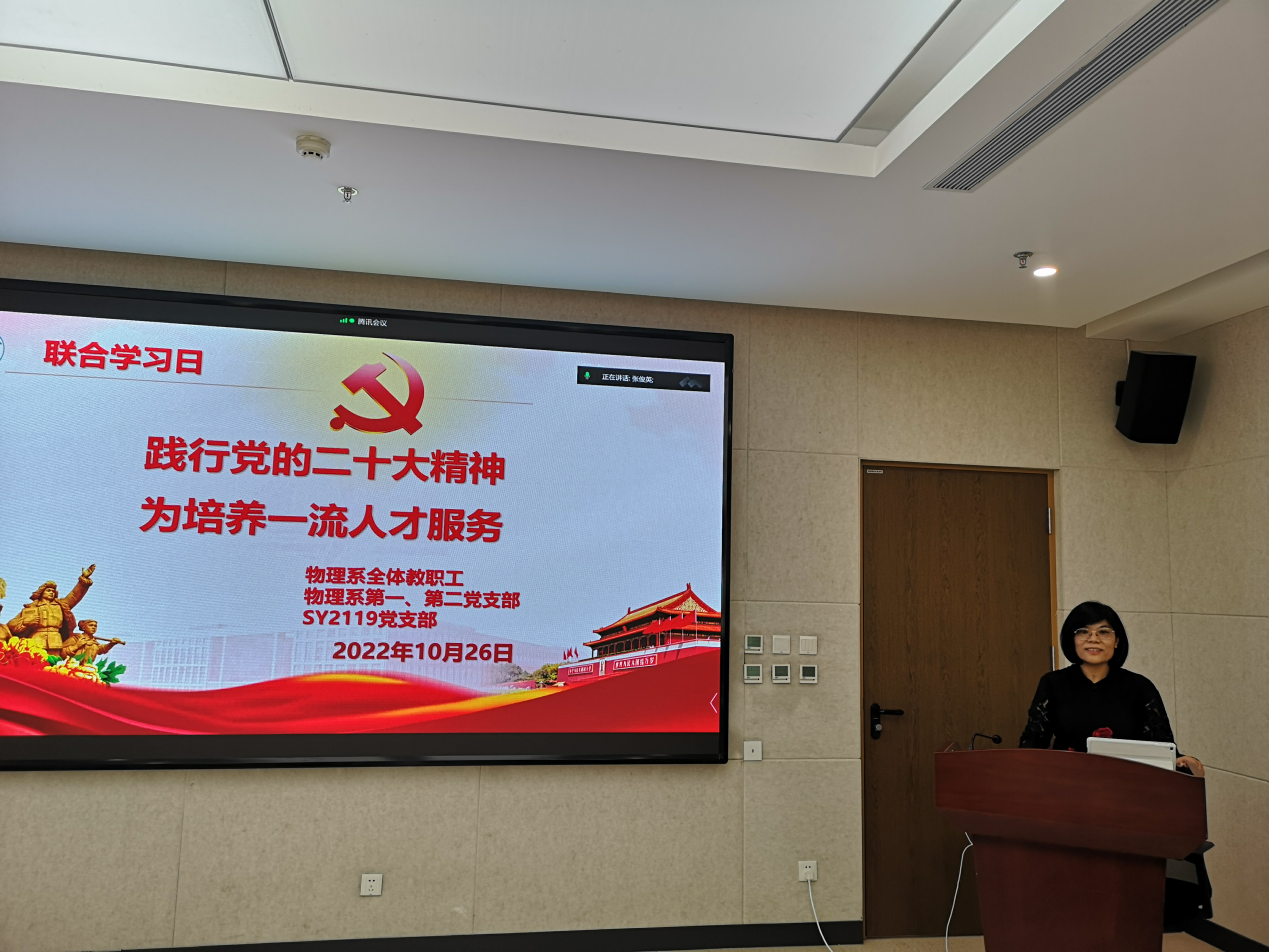 10月26日下午,物理系第一党支部、第二党支部与SY2119党支部在沙河校区主楼C511联合开展“学习贯彻党的二十大精神、努力培养一流创新人才”的主题学习日活动。必赢76net线路官网院长吕广宏,40余名教师和研究生参加了本次活动。本次活动由物理系主任郝维昌教授主持。
