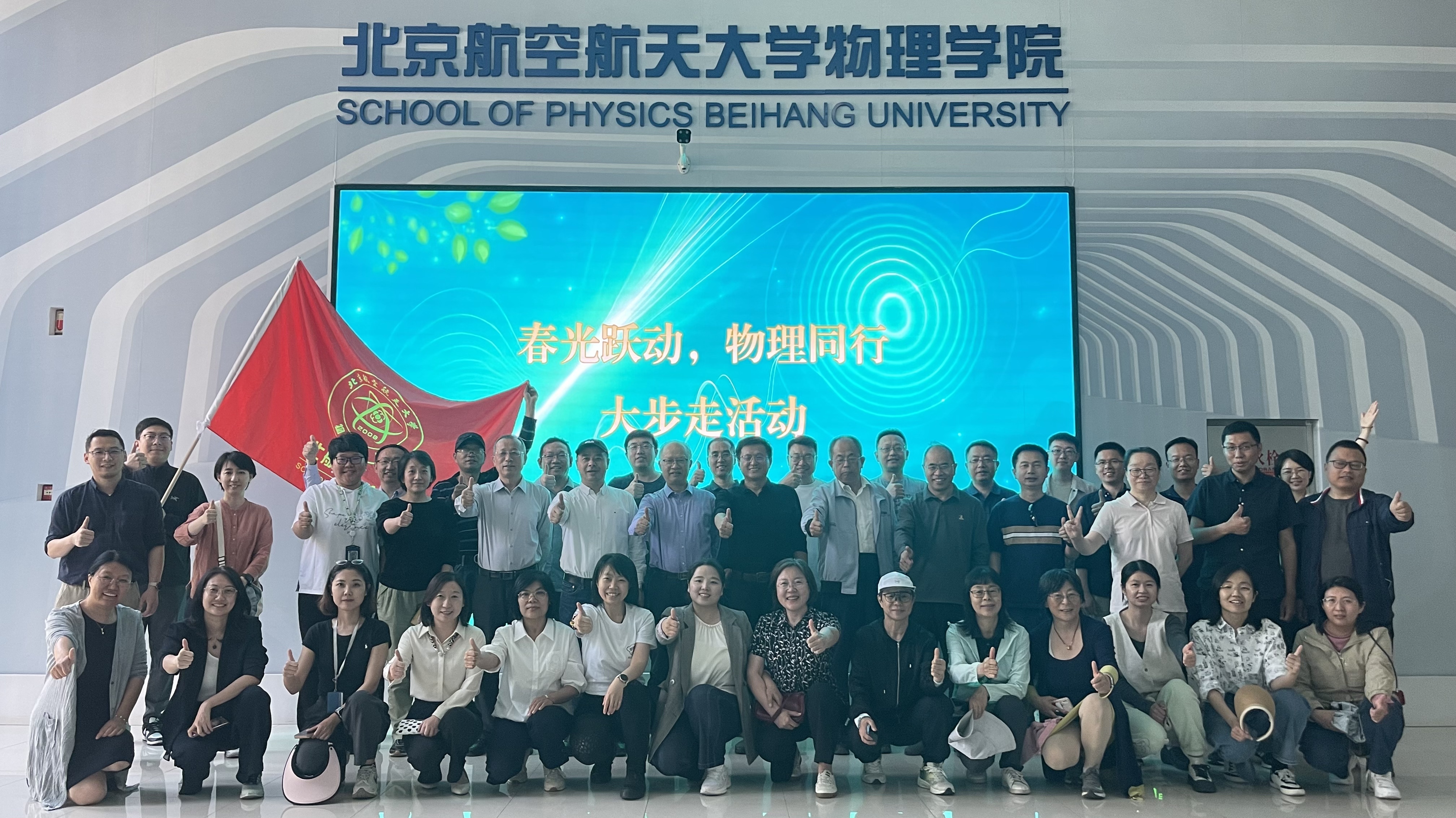2025年5月14日,北航必赢76net线路官网成功举办了首场“大步走”团体步行活动。当天,学院师生齐聚一堂,在学院大楼前合影留念,象征着团结与奋进。大家挥舞着学院旗帜,口号响亮,气氛热烈,展现了学院全体成员的活力与热情。