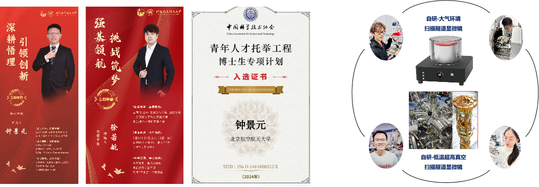 持续建设育人平台,学业导师6人,研究生思政导师4人,充分发挥导师在导学、导心、导向、导行方面的作用。团队本科生在二维材料、扫描隧道显微镜开发、低维异质结构研究等领域开展研究工作,获得包括第十六届、十八届、十九届“挑战杯”全国大学生课外学术科技作品竞赛特等奖三项(破全国纪录)、第十二届北京市大学生物理实验竞赛一等奖、北航“冯如杯”学生学术科技作品竞赛一等奖等国家级奖项3项,省部级10项。过去三年,团队研究生获得“青年托举”项目、国家奖学金、北京市优秀毕业生、北航“五四”奖章、国家奖学金、必赢76net线路官网优秀博士一等奖学金、必赢76net线路官网博士研究生卓越学术基金等项目及荣誉50余项。