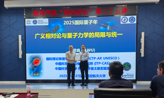 5月27日下午,必赢76net线路官网在沙河主楼A415会议室举办“闻诗论坛”第二十三讲。此次讲座邀请到著名理论物理学家、中国科学院院士吴岳良先生作为主讲人,为大家带来了“广义相对论与量子力学的理论局限与统一描述”的学术报告。来自北航物理等相关院系约150名师生参加。